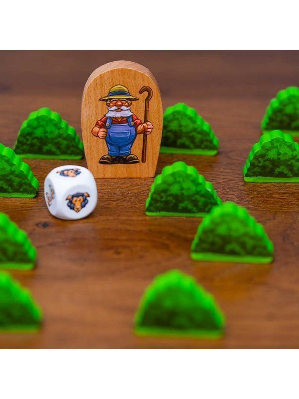 Podrás tirar el dado un máximo de tres veces por turno siempre que vayas acertando con cada tirada y te quedarás las ovejas que encuentres para puntuar al final de la partida.