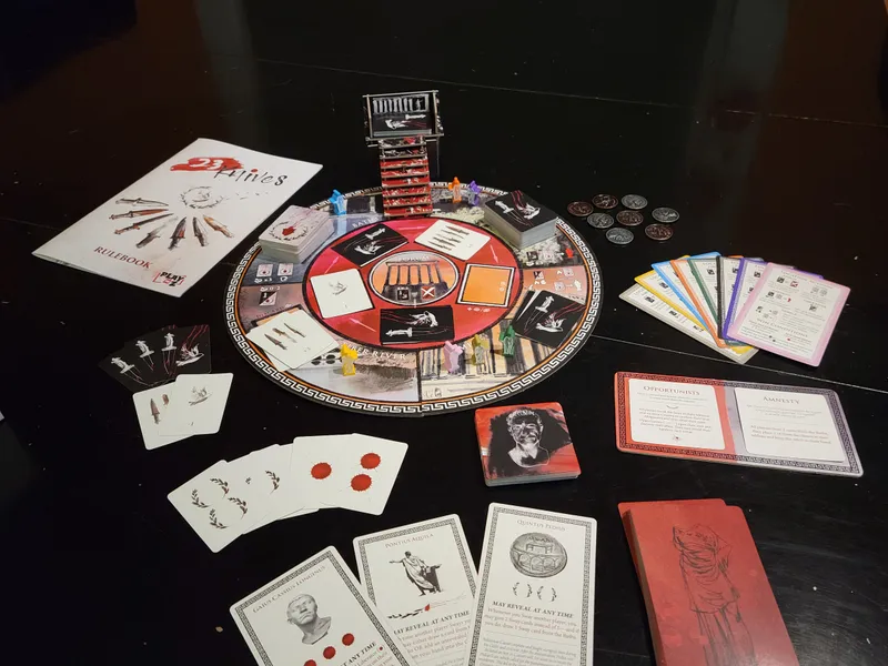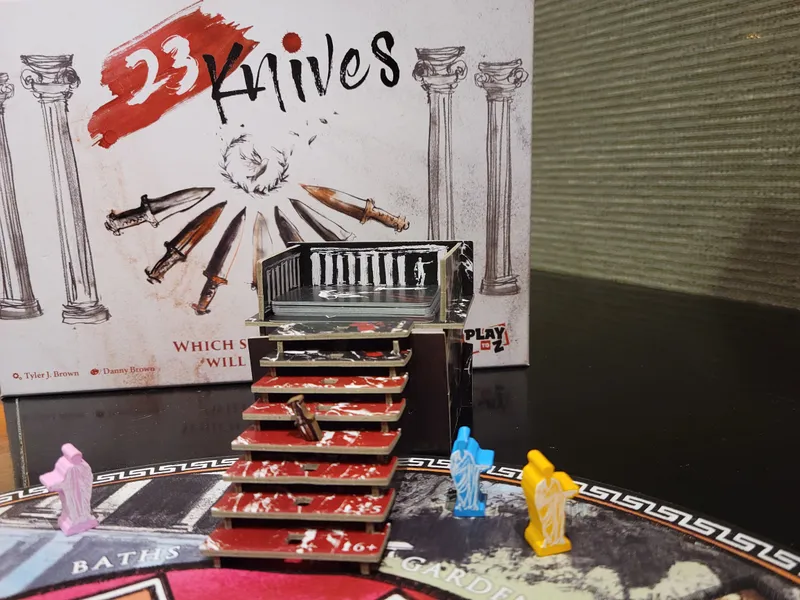 En 23 Cuchillos, asumes el papel de un ciudadano romano con tres lealtades: leal a César, libertador de Roma o oportunista que espera su momento. A lo largo del juego, viajas por Roma, manipulando a otros ciudadanos y convenciéndolos para que se unan a tu causa.