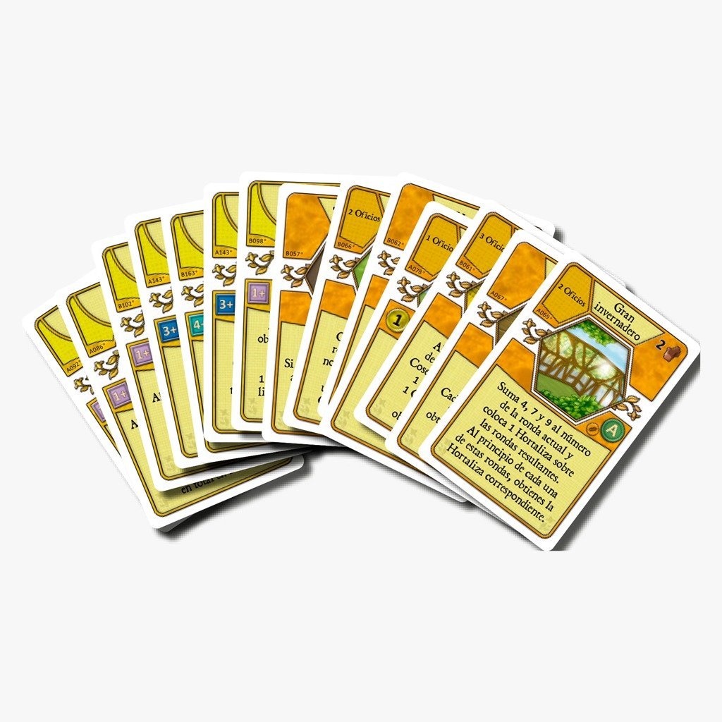 ¡La edición revisada de un juego de estrategia de fama mundial! El siglo XVII no fue una época fácil para ser granjero. Los jugadores comienzan la partida con dos miembros de la familia y pueden ampliarla a medida que avanza la partida. Los jugadores plantarán cereales y verduras, a la vez que complementan su alimentación con ovejas, jabalíes y ganado. Guía a tu familia hacia la riqueza, la salud y la prosperidad y ganarás la partida.