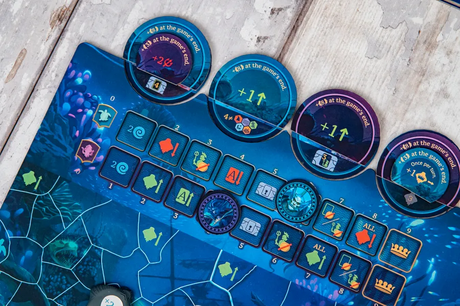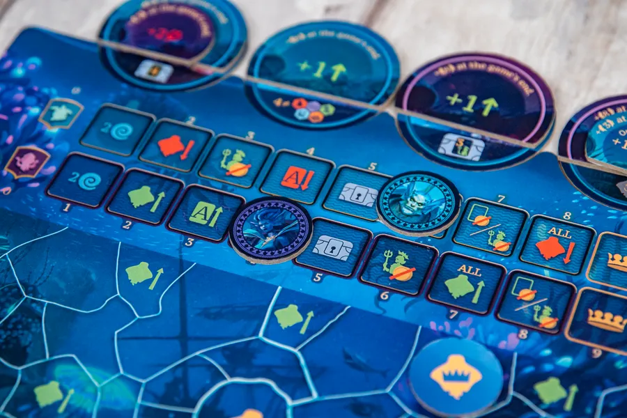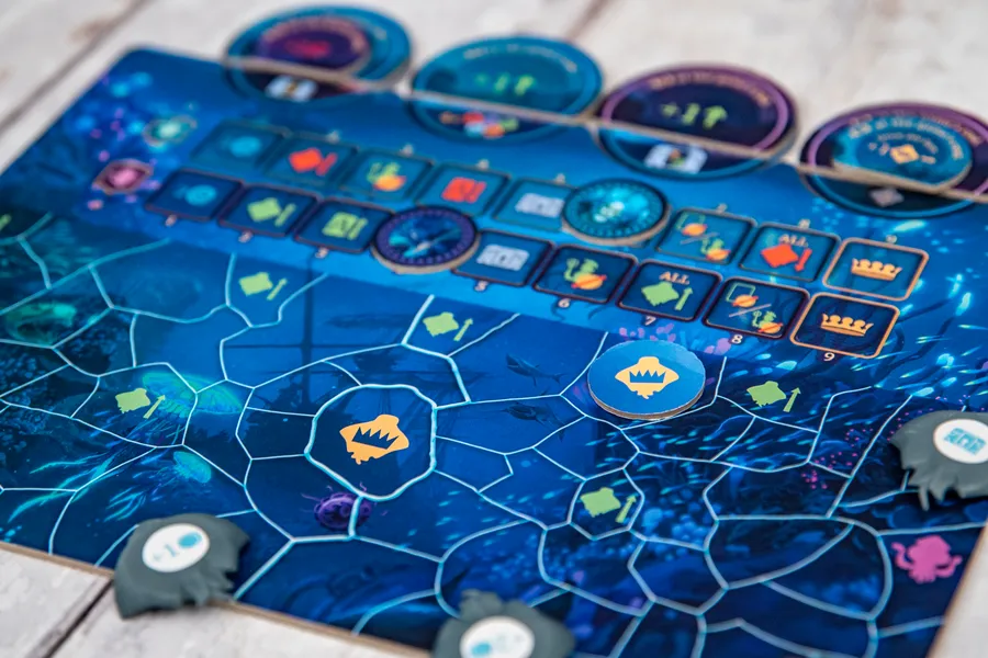 Elige un Rey Tortuga o una Reina Calamar y mejora tu reino submarino jugando cartas de acción y reuniendo ubicaciones en tableros de tres capas. Tras décadas de turbulencia, ¡es hora de unificar el mundo submarino bajo la aleta o el tentáculo de un solo gobernante!