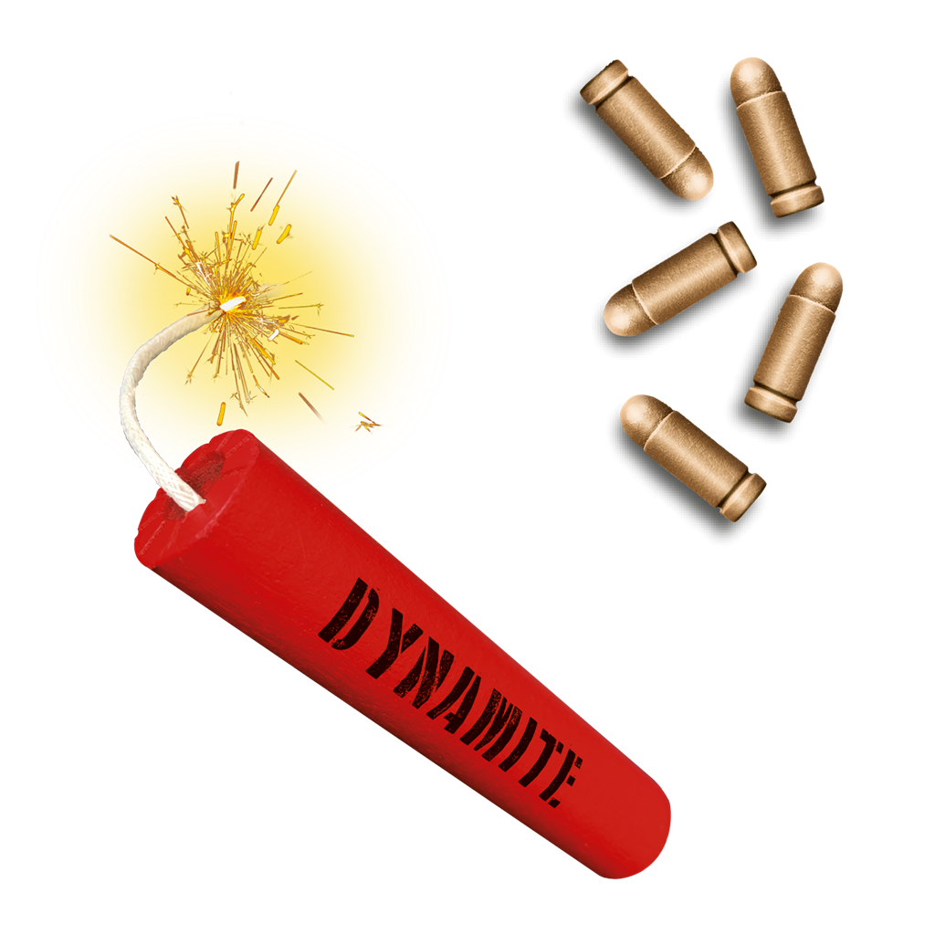 Cartucho de Dinamita, 34 Balas de madera y 8 tableros de doble cara