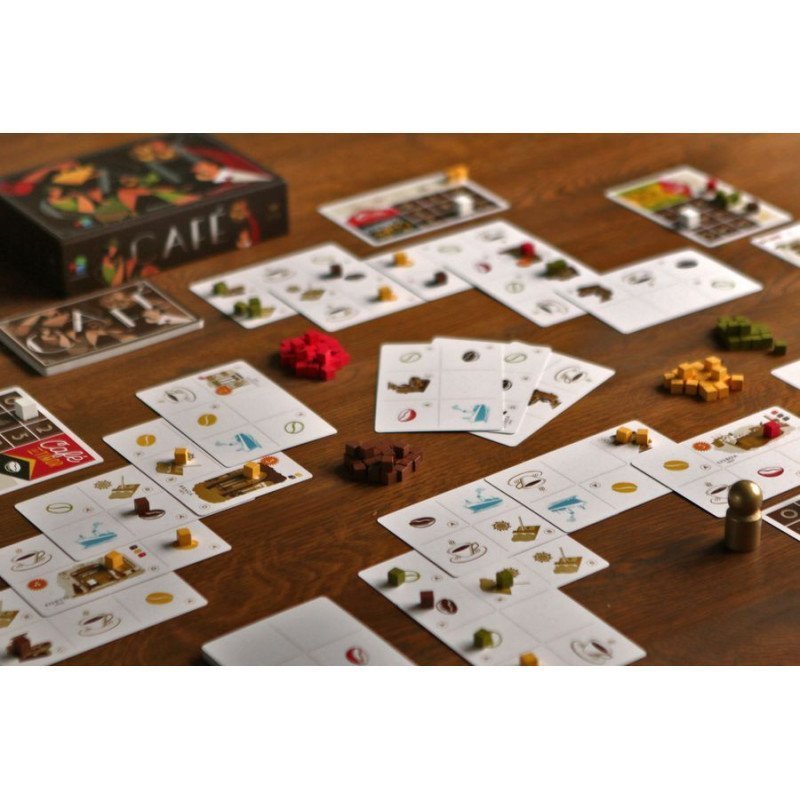 "Café" es un juego de estrategia, de 1 a 4 jugadores, en el que competiréis porque vuestra compañía sea la más afamada en la producción, venta y distribución de café en Portugal.