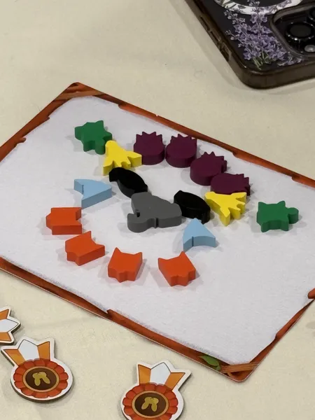 En este juego de fiesta, de 2 a 6 jugadores seleccionan meeples multicolores con forma de animales para crear los mosaicos más llamativos según el tema elegido por el Curador para ese turno.