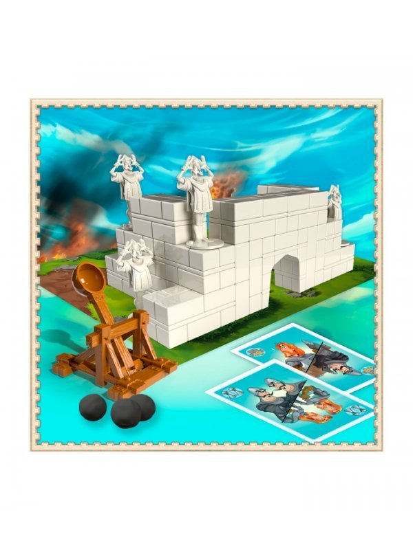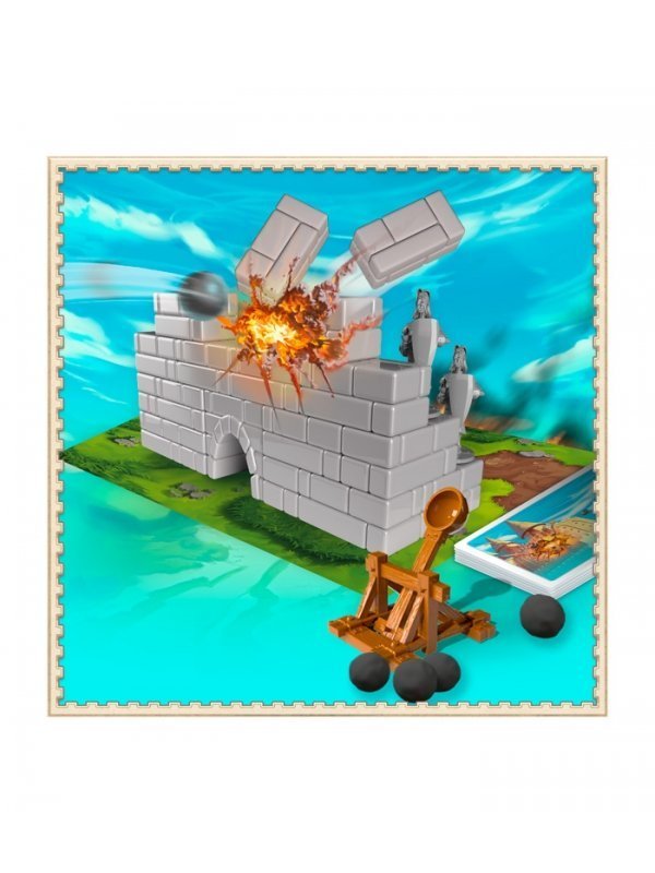 En Castillos y catapultas dos familias, los Chaufort y los Cunningfields, igual de orgullosas, disfrutan de sus hermosos castillos... si no fuera por el rencor que se guardan entre ellas... Carguen, apunten y... ¡disparen las catapultas! Construye tu castillo, coloca tu ejército, carga las catapultas y utiliza tus astutas maniobras para conquistar el territorio enemigo.