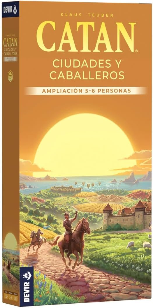 Catan: Ciudades y caballeros, Ampliación 5-6 jugadores aumenta el número de jugadores que pueden participar en una partida de la más expansión compleja del juego, en la que los participantes deben reforzar sus ciudades y construir ejércitos para protegerse de los bárbaros.