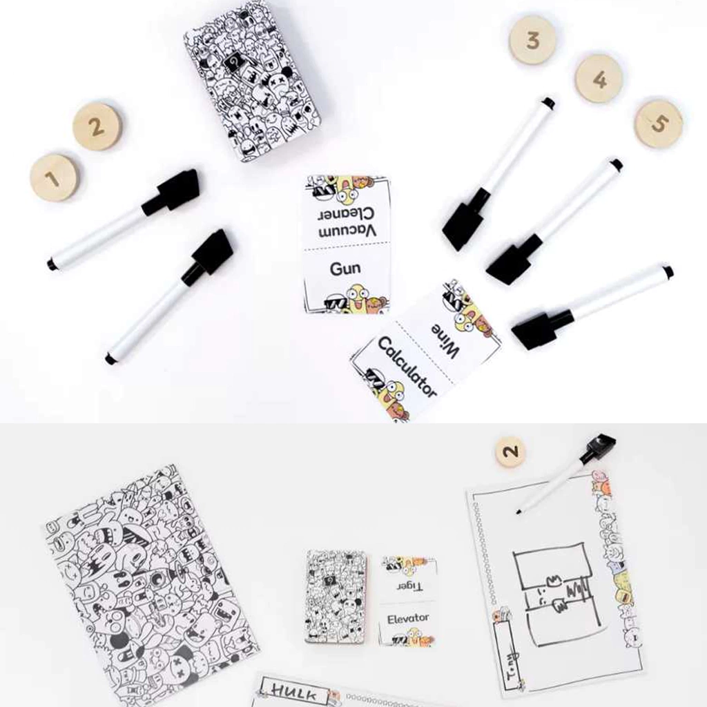 El jugador activo tendrá un intento de adivinar la palabra clave mirando el dibujo del jugador que antes haya terminado su dibujo. Si acierta ambos jugadores ganan puntos. Si falla, el jugador activo intentará de nuevo adivinar la palabra clave mirando el dibujo del siguiente jugador más rápido pero por menos puntos. Rapidez o eficiencia, ese será tu dilema en un frenético y divertido juego para todos los públicos.