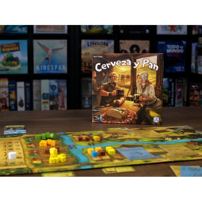 "Cerveza y Pan" es un juego de tablero para 2 jugadores, donde competirás para tener la mayor y mejor producción de cervezas y pan entre las aldeas ¡Obtén la mayor puntuación para ganar!