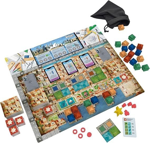 Cities es un juego de construcción de ciudades en el que redactarás los mejores proyectos y los organizarás en tu propia zona de juego. Diseñado por Steve Finn y Phil Walker Harding (autor de Sushi Go, Dungeon Raiders o Cacao) e ilustrado por Jorge Tabanera, permite partidas para grupos de 2 a 4 jugadores, de 10 años en adelante, con una duración de unos 40 minutos. Con mecánicas de colocación de trabajadores y construcción de patrones, el juego nos dará la oportunidad de visitar las ciudades de Sídney, Venecia, Nueva York, Barcelona, Río de Janeiro, Lisboa, México D.F. y Buenos Aires. ¿Serás capaz de diseñar el barrio más deslumbrante?