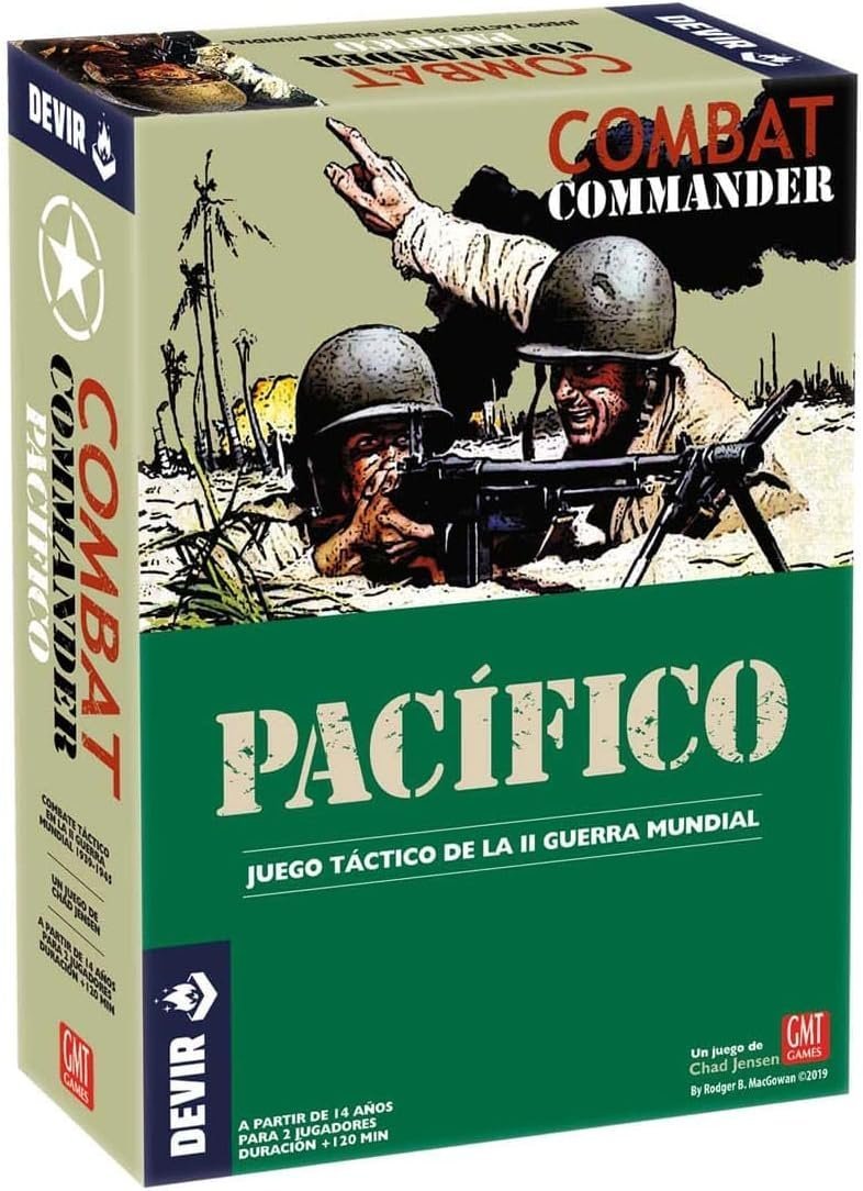 Combat Commander: Pacifíco. Desarrollado por Chad Gensen, este título es un emocionante juego táctico para 2 jugadores, recomendado para mayores de 14 años. Cada partida tiene una duración variable, generalmente superior a los 170 minutos, dependiendo del escenario elegido. A través de mapas diseñados específicamente para cada batalla, podrás desplegar unidades históricamente precisas, gestionando recursos y tomando decisiones críticas en el fragor del combate.