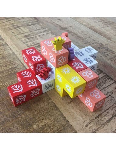 Sumérgete en la experiencia única de Coral, el innovador juego de mesa donde la belleza de los arrecifes de coral cobra vida en tu sala de estar. Diseñado para entusiastas de los juegos y amantes del océano por igual, Coral te invita a desarrollar colectivamente un arrecife de coral tridimensional, en una mezcla perfecta de cooperación y competición. A medida que el juego avanza, te enfrentarás al desafío de posicionar estratégicamente tus especies de coral para absorber la máxima cantidad de luz solar, esencial para tu crecimiento y supervivencia.