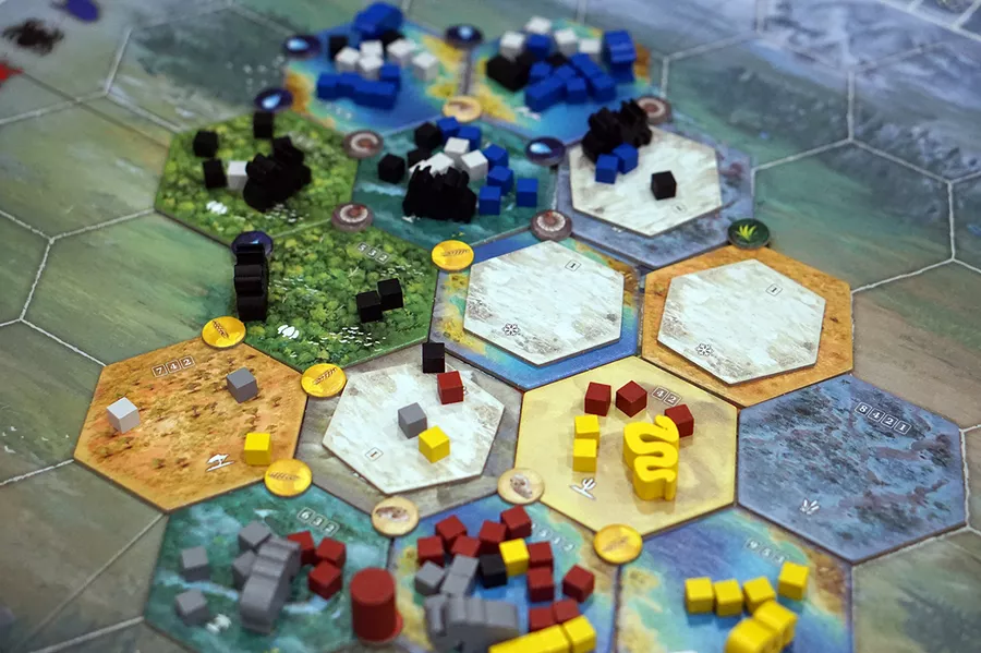 Las grandes fichas hexagonales se utilizan a lo largo del juego para crear una interpretación en constante expansión de la Tierra tal como podría haber sido hace mil siglos. Las fichas de tundra más pequeñas se colocarán sobre las más grandes, transformándolas en tundra en el proceso, a medida que avanza la edad de hielo.