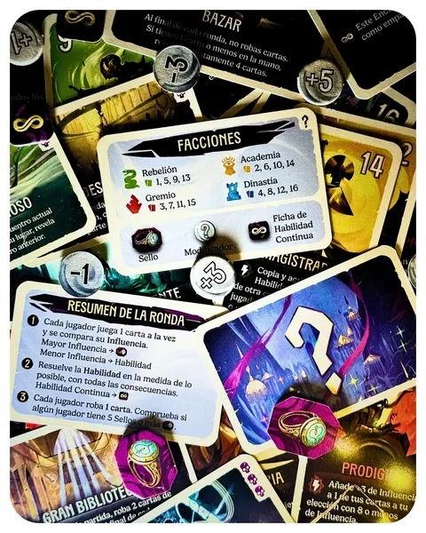Hace muchos años, un joven aventurero liberó a una poderosa genia mágica atrapada en el corazón de unos pantanos. Juntos construyeron la ciudad mágica de Cardia. Actualmente, la vida prospera en la ciudad. Sin embargo, cuatro facciones se baten por el poder: la Rebelión de los pantanos, los eruditos de la Academia, el Gremio y la Dinastía. Quien obtenga los poderosos anillos de sello conseguirá el favor de las facciones y se convertirá en el nuevo gobernante de Cardia. ¡Juega bien tus cartas y derrota a tu oponente!