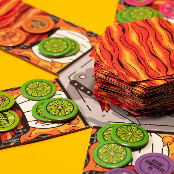 Sé el primero en armar tu trompo al pastor carta por carta; con cartas del 1 al 10 del mismo color de tu platito. Bluffea y juega con fuego: miente sin ser descubierto.