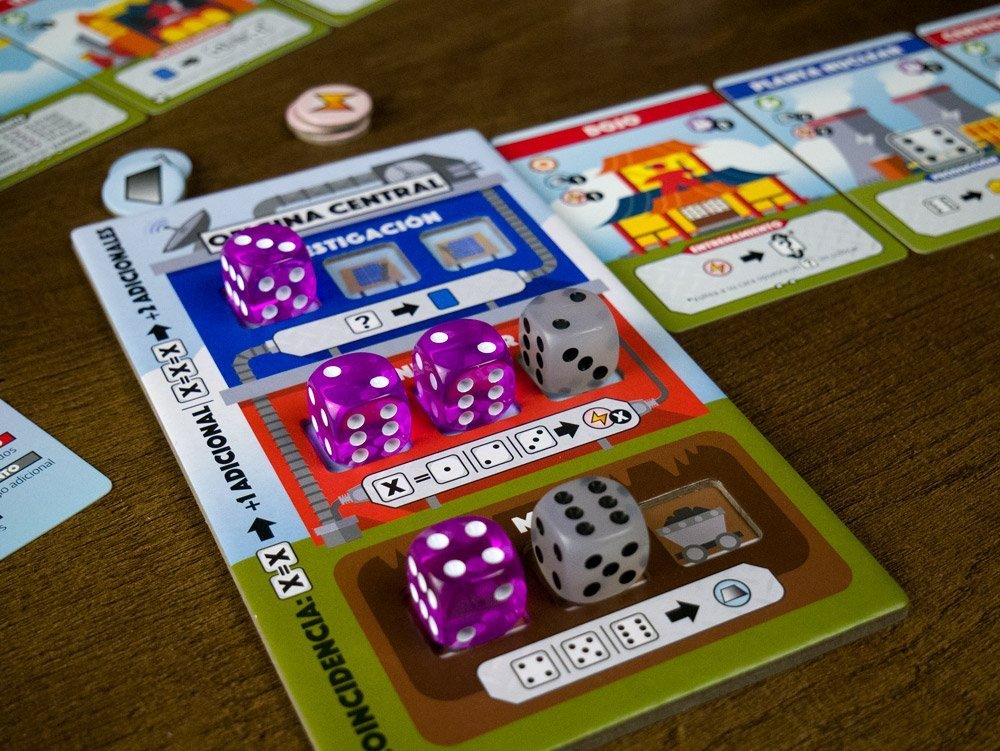 Asigna tus dados como trabajadores a tus fábricas para generar productos y recursos.