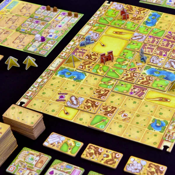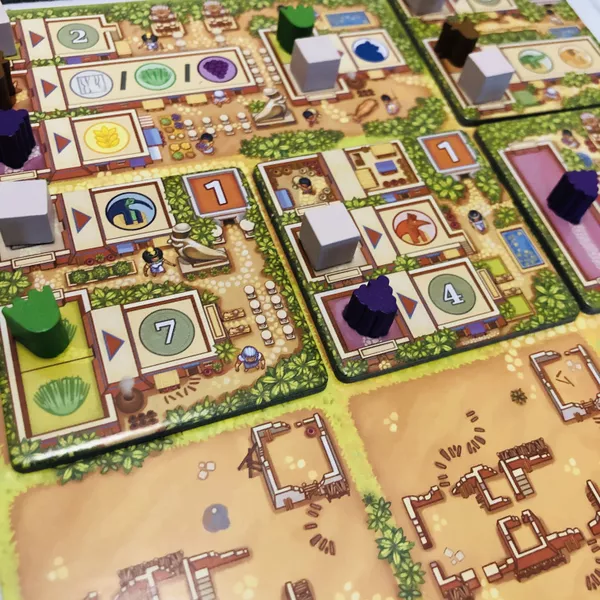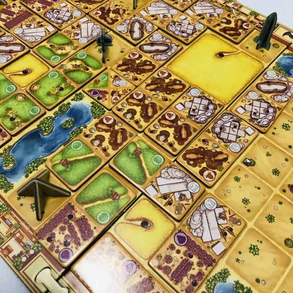 Cada jugador dispone de un tablero personal en el que va construyendo su metrópolis y que sirve también para llevar al cuenta del almacén de trigo y como recordatorio de la puntuación de final de partida.