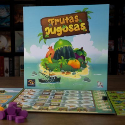 Frutas Jugosas es un juego de tablero en el que una adecuada estrategia te podrá llevar a la victoria. Tendrás que conseguir la mayor cantidad de puntos mediante el aprovisionamiento de barcos y también instalando negocios en tu isla. En cada partida, se podrán mover las losetas para equilibrar la liberación de espacios en cada isla, consiguiendo así espacios para tus negocios.