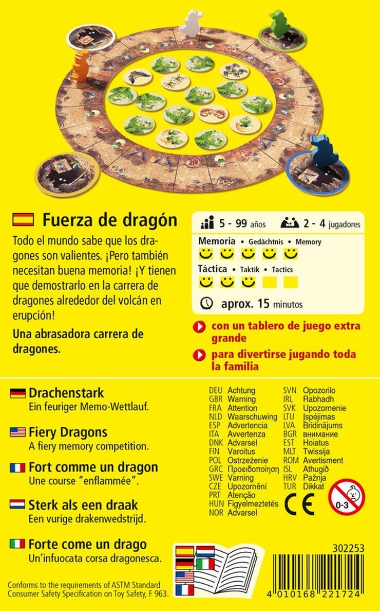 Es un juego de memoria que te hace pensar un poquito una táctica para intentar avanzar lo más lejos posible en base a tus propias capacidades (lo que eres capaz de recordar) y a tu ubicación. Además, incorpora la tensión de poder encontrar una ficha (el dragón pirata) que ¡te hará volver atrás en la carrera!
