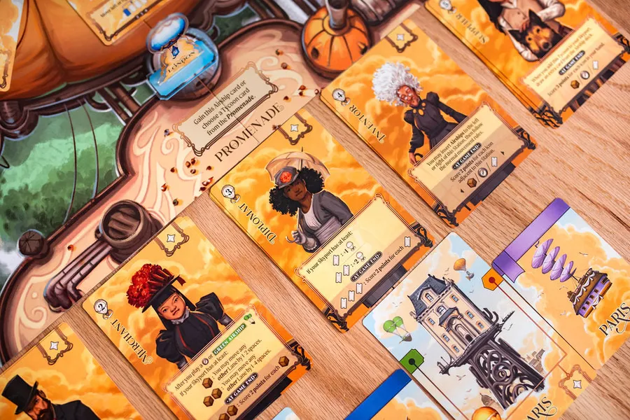 Reclutar magnates para tu puerto aéreo te brindará ventajas únicas al manipular tus dirigibles atracados, así como oportunidades adicionales de puntuación al final de la partida.