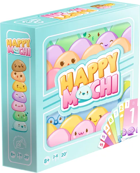 En Happy Mochi tienes que ser el primero en vaciar tu mano y quedarte sin cartas, pero cuidado, ¡que no es tan sencillo como parece! Tendrás que jugar las cartas de dos en dos y está terminantemente prohibido reorganizar tu mano, así que prepárate para darle al coco si quieres ganar la partida en este dulce y estratégico juego tipo party en el que la suerte y la táctica van de la mano.
