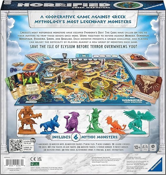 ¡Los monstruos más famosos de Grecia han escapado de la Caja de Pandora! Trabaja en equipo para defenderte de Medusa, Cerbero, Minotauro, Quimera, Sirena y Basilisco.