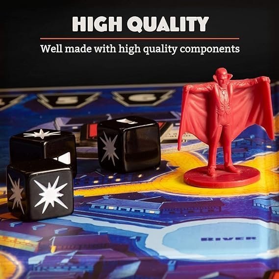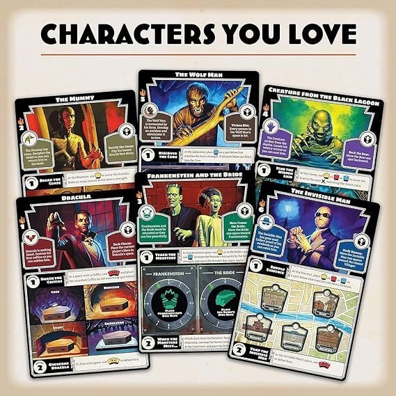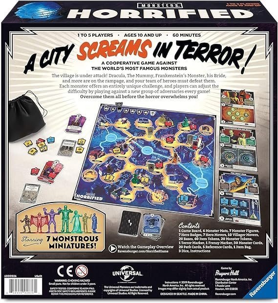 Frankenstein, Drácula, el Hombre Lobo y otros monstruos icónicos de películas de terror invadirán tu aldea para causar estragos, cazar héroes y aterrorizar a los aldeanos en este juego de mesa cooperativo. ¡Trabajad juntos para derrotar a los monstruos antes de que la ciudad sea destruida para siempre!