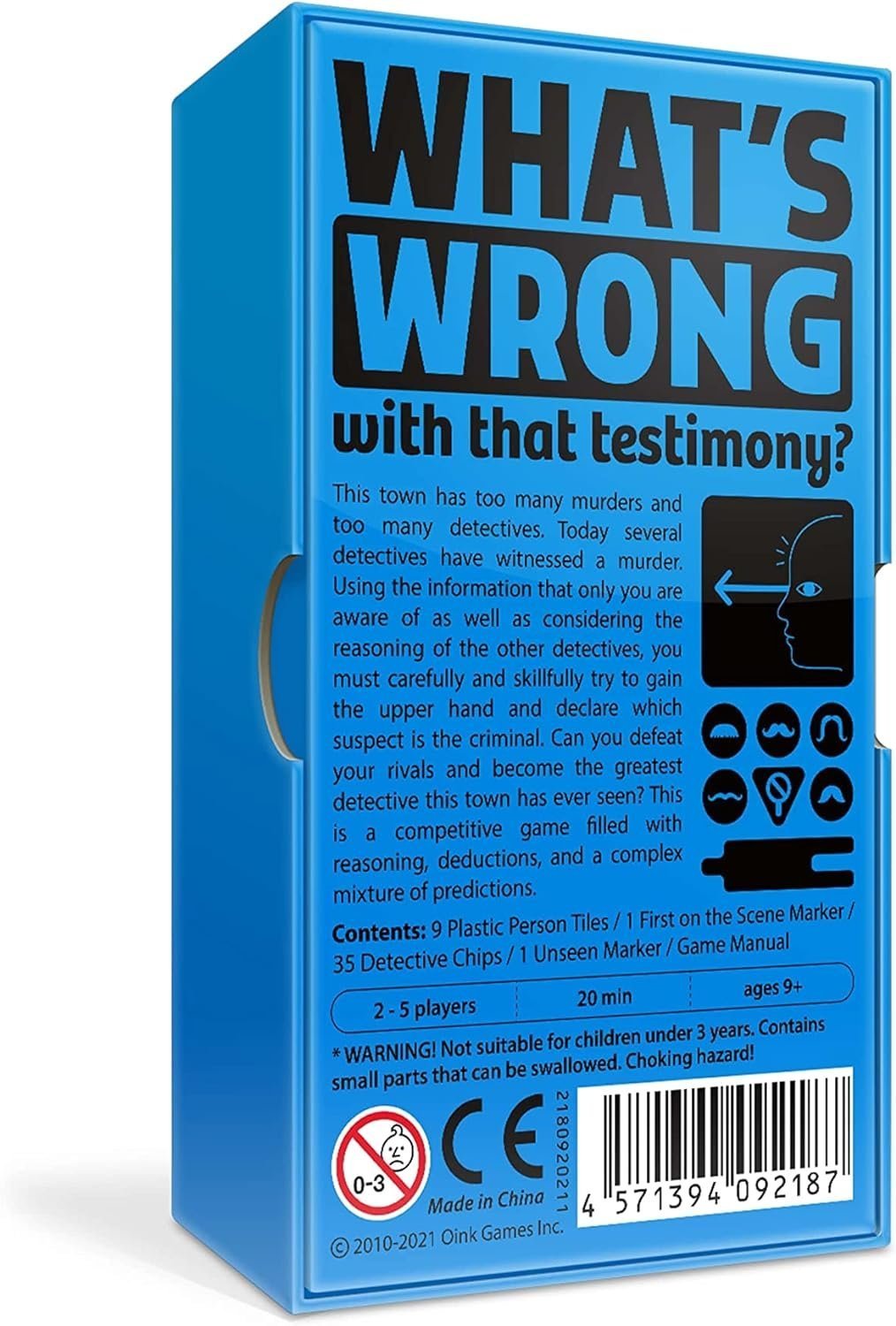 El juego se juega por rondas. En cada ronda, cada jugador recibe una de las ocho siluetas (que están numeradas del 2 al 8 con una en blanco), mientras que tres siluetas se colocan en el centro de la mesa como sospechosas y la silueta final se denomina víctima. (Con tres jugadores, el número 2 se elimina del juego). Tienes que determinar qué sospechoso es el culpable, ya sea para acusarlo o para atraer a los otros jugadores para que acusen a alguien que es inocente.