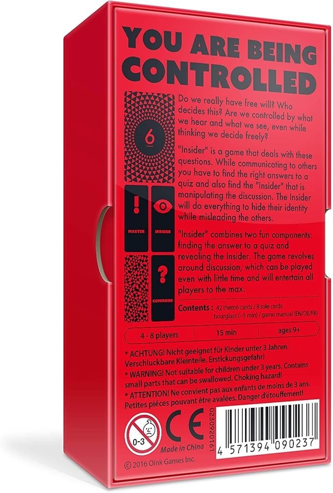 ¿Realmente tenemos libre albedrío? ¿Quién lo decide? ¿Estamos controlados por lo que oímos y vemos, incluso cuando creemos que decidimos libremente? Insider es un juego que aborda estas preguntas. Al comunicarte con otros, debes encontrar las respuestas correctas a un cuestionario o encontrar al “insider” que manipula la discusión. Este “insider” hará todo lo posible por ocultar su identidad y engañar a los demás.