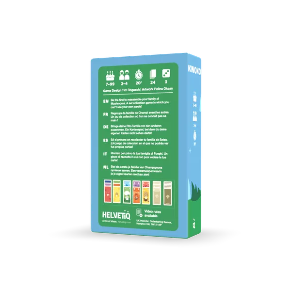 ¿Parece fácil? El truco está en que solo puedes ver las cartas de los demás jugadores, y tus decisiones se limitan al resultado de los dados. Además, en cada ronda una familia de hongos se vuelve venenosa, y tener una carta de ese color en la mano al finalizar la ronda te resta un punto.
