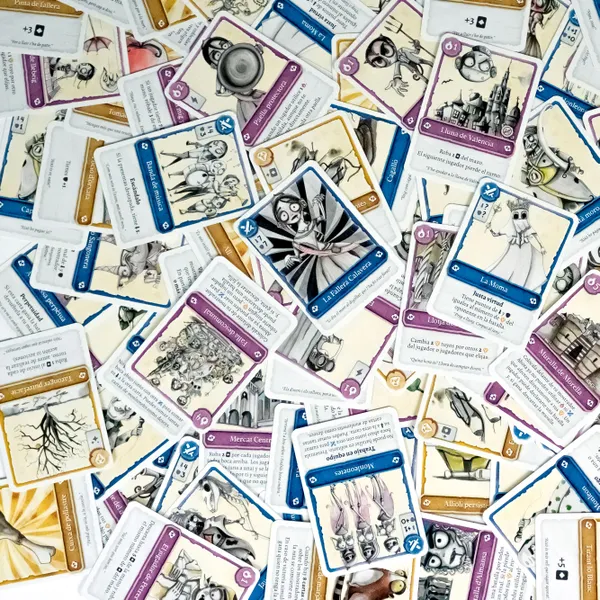 108 cartas, 6 más que en el juego original. Se incorporan algunas cartas promocionales y cartas de La Fallera Calavera 2 y 4 al juego básico.