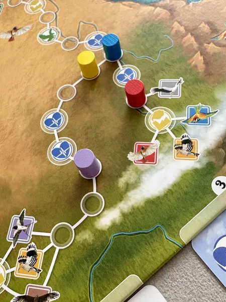 Vuela hacia África: Realiza una serie de vuelos con tu ficha de exploración, avanzando por el tablero. Superando los peligros que encuentres en tu camino que pondrán aprueba tus habilidades.