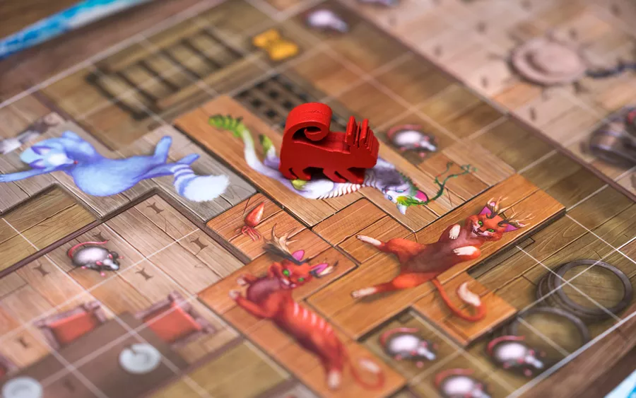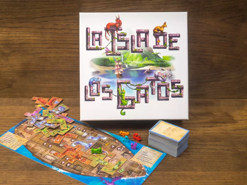 En La Isla de los Gatos te convertirás en un ciudadano de Punta de Tempestad y te embarcarás en una misión de rescate para salvar tantos Gatos como puedas antes de la llegada de Vesh. Debes explorar la Isla, rescatar Gatos, recoger antiguos Tesoros y encontrar la manera de colocar todo en tu barco antes de volver sano y salvo a Punta de Tempestad. Los Gatos y los Tesoros se representan con losetas de diferentes formas que deberás colocar cuidadosamente en tu barco. Trata de mantener juntas a las familias de Gatos, completa cartas de Manuscrito y deja suficiente espacio para poder seguir colocando cosas en tu barco. Pero cuidado: ¡volver a Punta de Tempestad con el barco medio vacío no estará muy bien visto!
