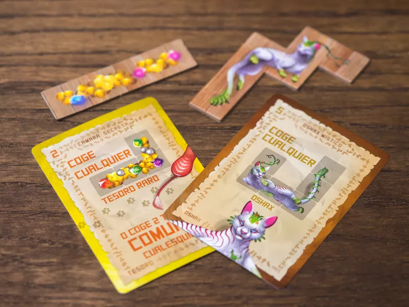Debes explorar la Isla, rescatar Gatos, recoger antiguos Tesoros y encontrar la manera de colocar todo en tu barco antes de volver sano y salvo a Punta de Tempestad. Los Gatos y los Tesoros se representan con losetas de diferentes formas que deberás colocar cuidadosamente en tu barco.