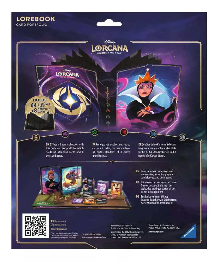 El Lorcana Portfolio The Queen está diseñado para resaltar la belleza y el valor de tus cartas, ofreciendo un almacenamiento seguro y fácil de usar. Su interior cuenta con páginas especialmente diseñadas para acomodar cartas de tamaño estándar con o sin fundas protectoras. Gracias a su estructura resistente y materiales de primera calidad, este portafolio protege tus cartas de rayones, suciedad y otros daños, asegurando que se mantengan en excelente estado a lo largo del tiempo.