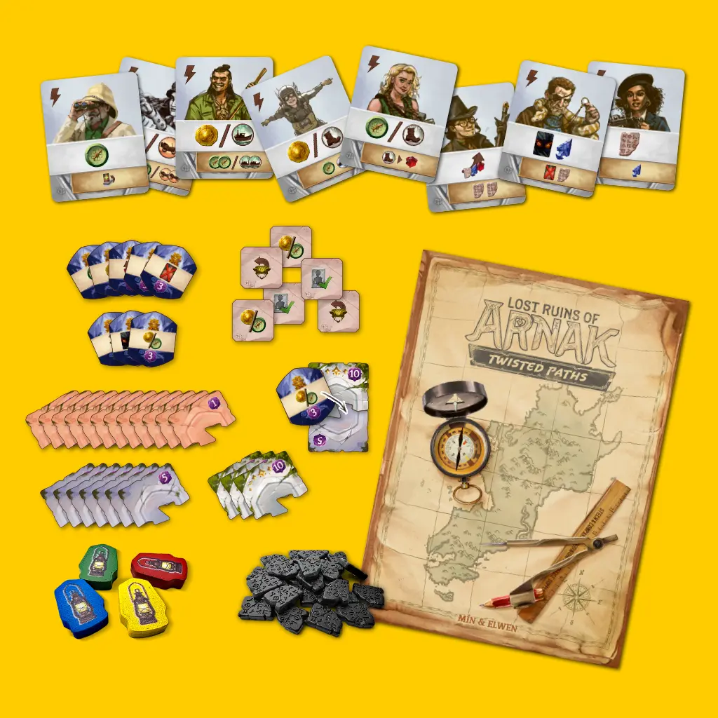 El Cofre de Aventuras es una expansión para Lost Ruins of Arnak que incluye una solución de almacenamiento original que se adapta a todo el contenido de Lost Ruins of Arnak publicado anteriormente. También incluye una expansión completamente nueva, Twisted Paths, que abre dos mapas nuevos y más grandes. Requiere el juego base.