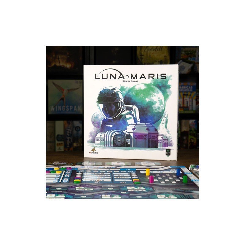 Luna Maris es un juego de tablero en el que os estableceréis en la propia Luna. Sobre una base de operaciones, os encargaréis de extraer los valiosos recursos que esconde nuestro satélite, entre los que se encuentra el agua, minerales y el helio-3, una increíble fuente de combustible. Dirige a tu equipo adecuadamente y mejora en todos los sentidos tu propia base lunar.