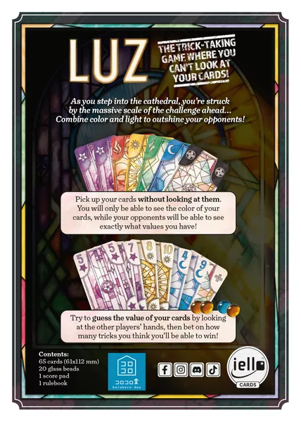 LUZ es un juego de bazas con un giro muy particular; durante el juego, solo podrás ver las cartas de tus oponentes. El valor de las cartas de tu mano estará oculto para ti, aunque podrás ver de qué palo es cada carta. Tendrás que analizar las manos de tus oponentes y tratar de adivinar qué cartas tienes en la mano para apostar el número exacto de bazas que vas a ganar.