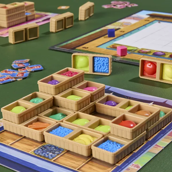 Market Fresh incluye puestos de mercado más pequeños y una variante llamada “Alturas de Cajas” que añade un desafío adicional al juego para los jugadores que quieran construir puestos más altos.