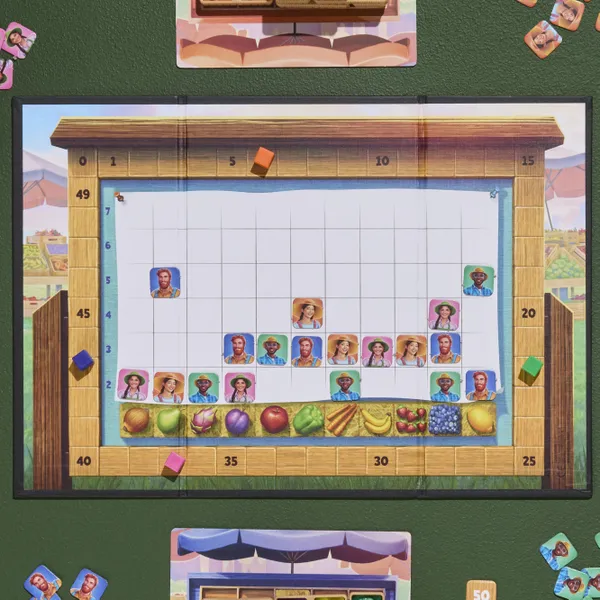 Se obtienen puntos al colocar una caja en el puesto. Cuantos más productos coincidan con los visibles en el tablero, más puntos se obtienen. Los jugadores ganan puntos extra al final de la partida por cada tipo de producto del que hayan tenido más cajas.