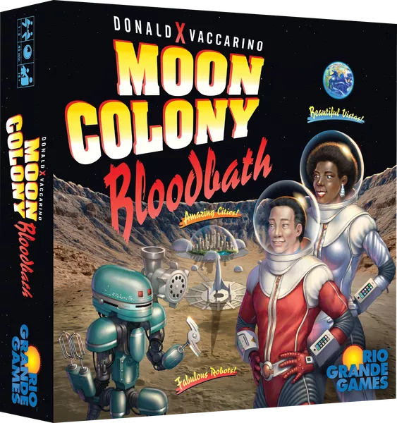 Moon Colony Bloodbath es un juego de mesa que construye y pierde motores, con un mazo compartido que los jugadores construyen y que provoca cosas, muchas de ellas malas que matan a la gente de tu colonia lunar, pero algunas positivas y otras que te permiten construir.