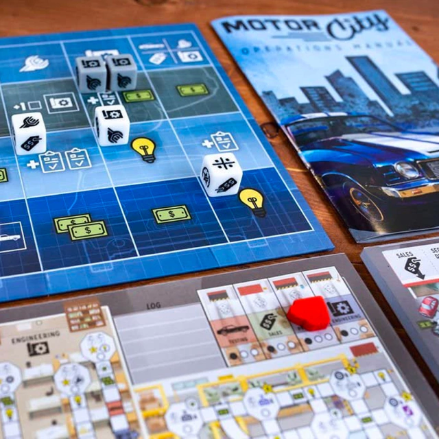 Motor City es un juego de Roll & Write estratégico sobre la gestión de una fábrica de automóviles en el apogeo de Detroit.