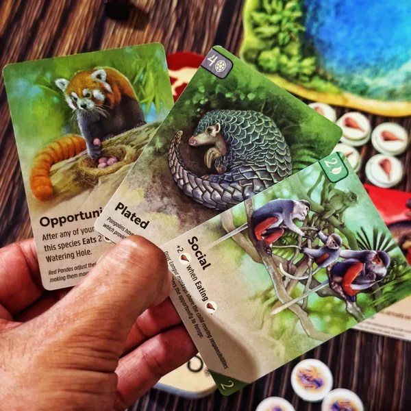 Nature es un juego de construcción de tableros basado en cartas que se juega en 4 rondas. Cada ronda se divide entre la Fase de Adaptación y la Fase de Alimentación.