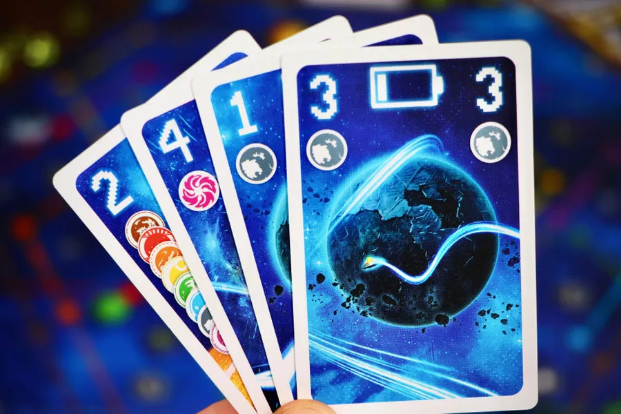 En tu turno, juegas una carta, activas sus acciones en el orden que prefieras y luego robas cartas hasta completar tu mano. Las cartas te permiten realizar diversas acciones: mover tu nave, recolectar energía para obtener movimiento adicional, avanzar planetas en su órbita o incluso invertir la dirección orbital de un planeta.