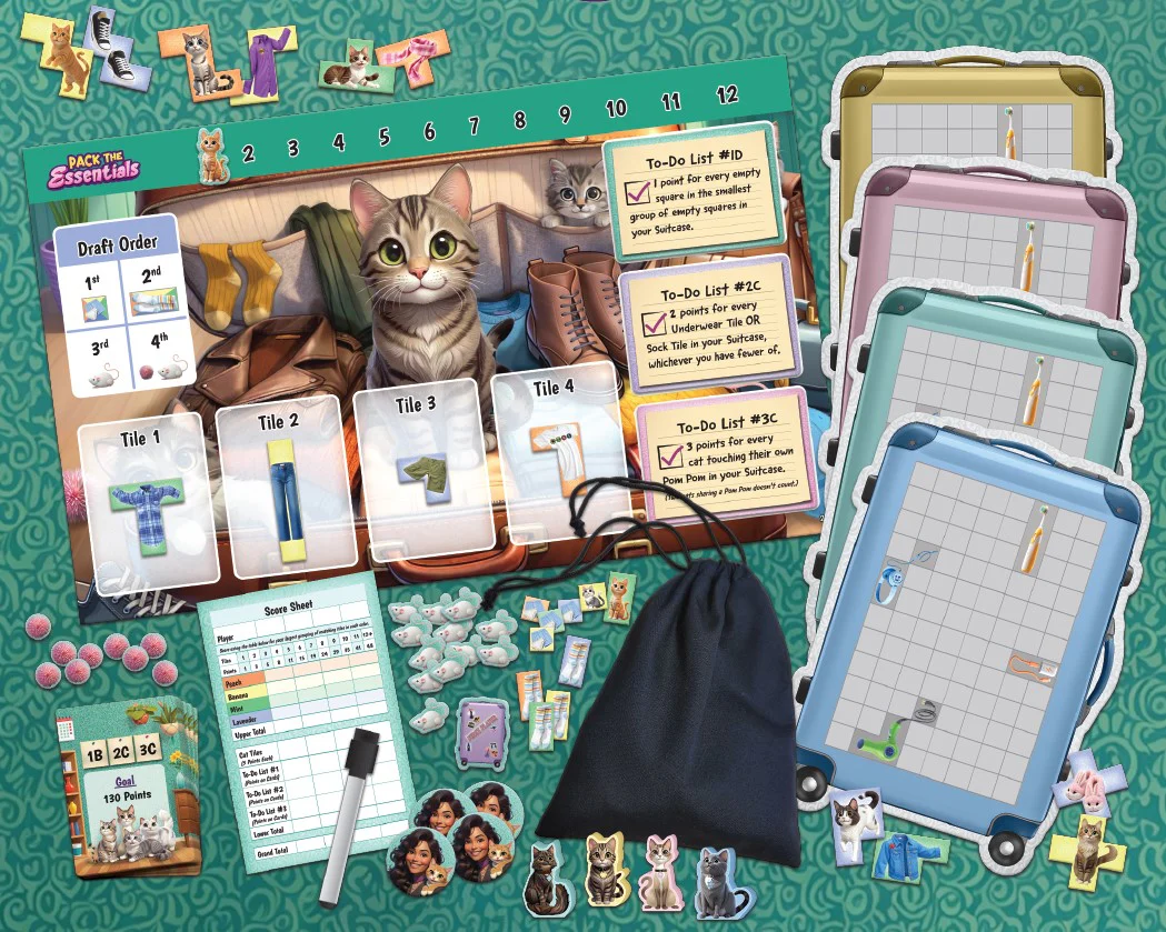 A lo largo de doce rondas, los jugadores intentan sumar la mayor cantidad de puntos posible seleccionando y colocando fichas en sus maletas. Estas fichas representan objetos, gatos y gatitos, que deberán organizar de la manera más eficiente. Pero no solo se trata de empacar, también hay que recolectar juguetes para gatos, usar el útil servicio de Pack Rat y completar los objetivos de la lista de tareas. Cada decisión cuenta para optimizar el espacio y maximizar la puntuación.