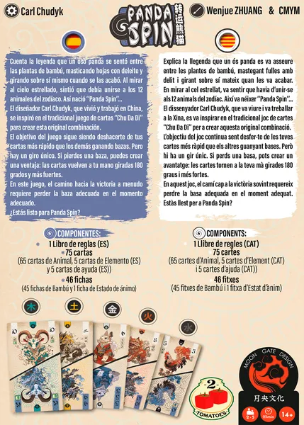Panda Spin es un juego de cartas ágil y muy original en el que los jugadores intentan quedarse sin cartas mientras alimentan a sus pandas recolectando bambú. Combina la tensión de los juegos de escalera con giros inesperados que hacen que cada mano se sienta distinta.