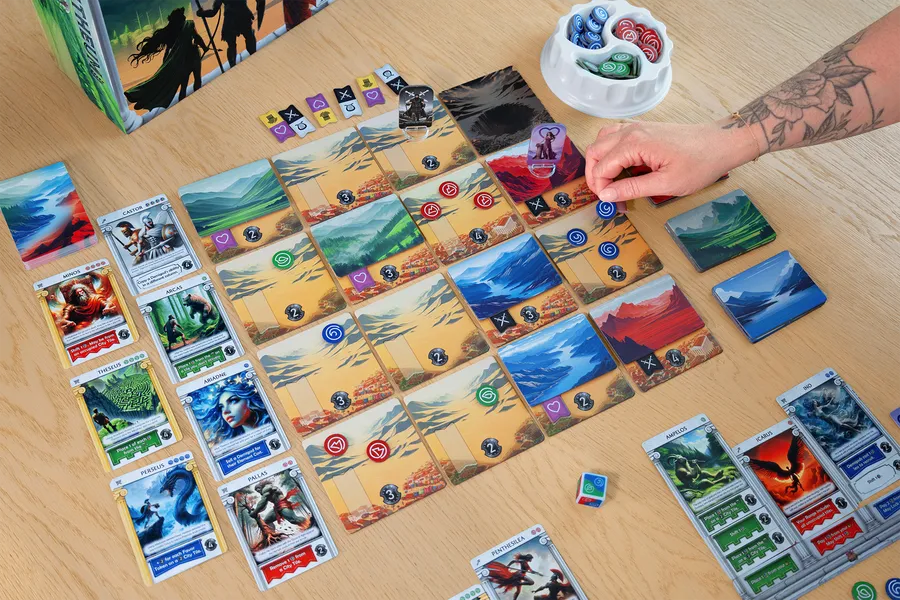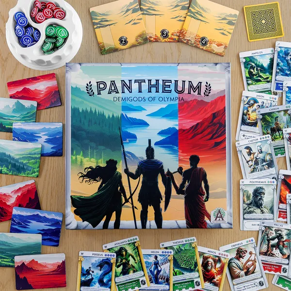 Combina la mecánica de Control de Área moviendo a tu dios por el mapa para influir en diferentes áreas con un sistema de Construcción de Motores que recluta poderosos Semidioses para aumentar y mejorar tus habilidades en cada turno. El ganador será el jugador que consiga la mayor puntuación transformando el mundo según su plan secreto y contratando poderosos Semidioses.