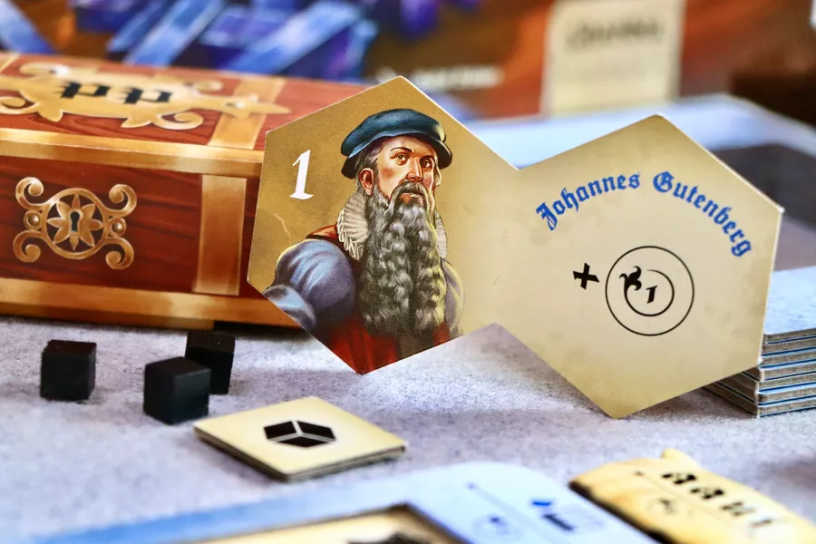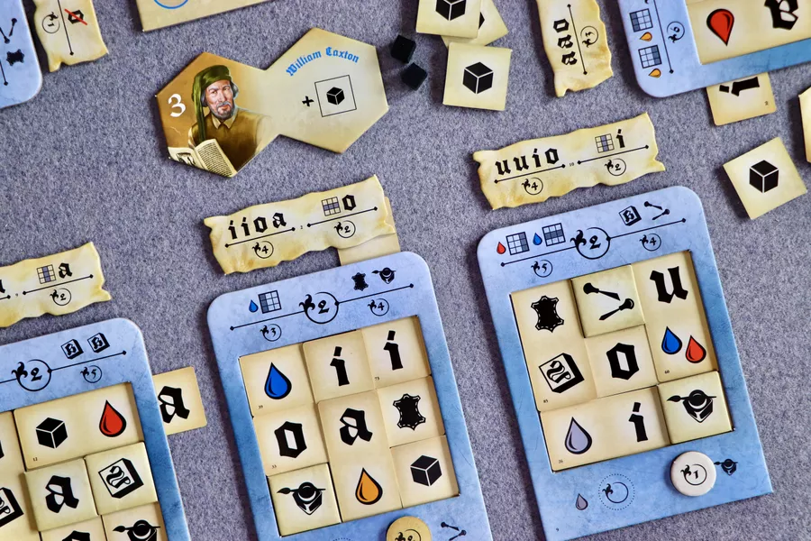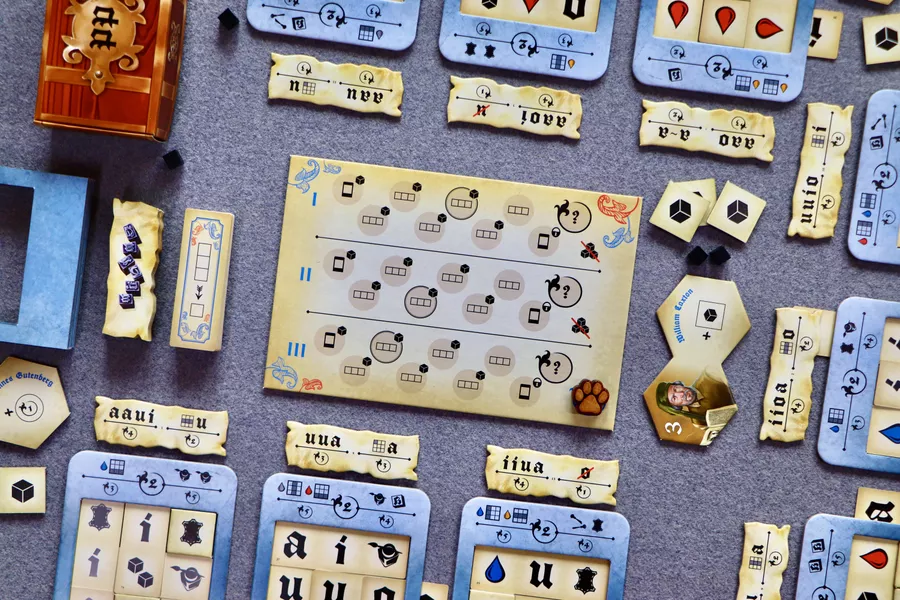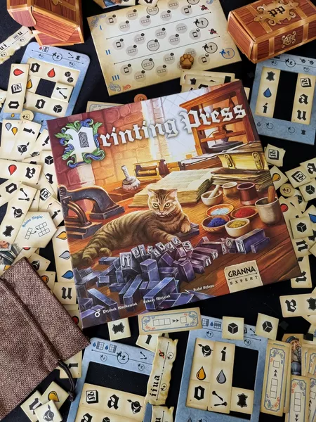 En el juego Imprenta, tu objetivo es cumplir impecablemente los pedidos de los clientes y dar renombre a tu taller de imprenta. El juego consta de tres rondas, durante las cuales seleccionas estratégicamente planchas, marcos y tarjetas de impresión para ejecutar meticulosamente cada pedido. Cuanto más fielmente realices las tareas asignadas, mayor será tu reconocimiento. Tras tres rondas, gana el jugador con más puntos de fama.