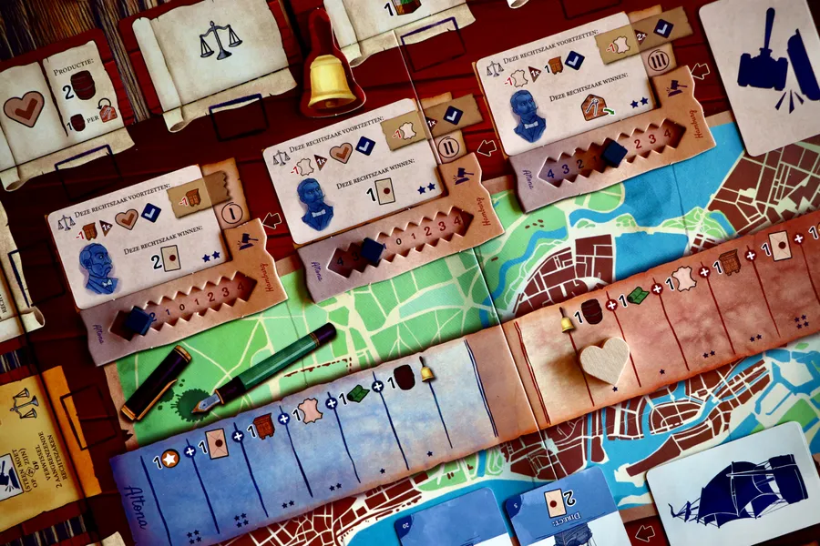 En Ciudades rivales, cada jugador controla el destino de una de estas dos ciudades vecinas, intentando conseguir una ventaja insuperable en 1 de las 4 áreas de Éxito (Prestigio, Juicios, Flotas o Alianzas). El primer jugador que lo consiga gana la partida de inmediato. Esto da lugar a partidas de «tira y afloja» tensas y con