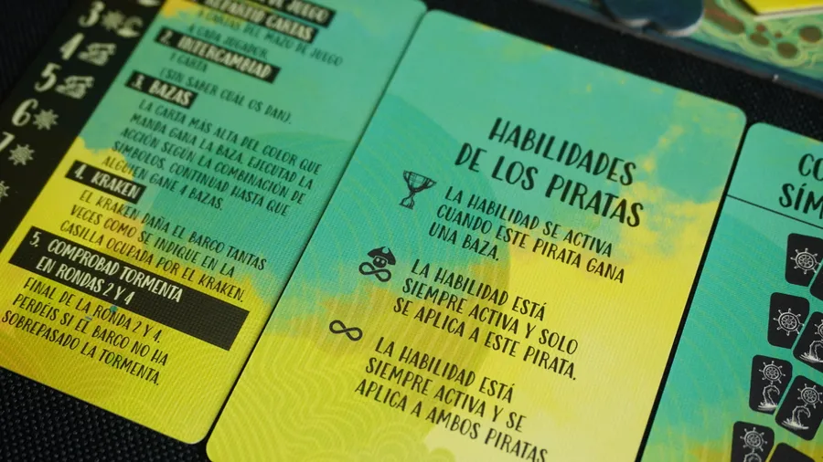 Antes de que comience cada ronda, los jugadores intercambian cartas y realizan una serie de bazas. Se activarán diferentes acciones del juego según quién gane cada baza, en combinación con las habilidades únicas de los personajes. Sin embargo, el estruendo del agua del mar y el rugiente Kraken crean una situación ensordecedora, y los jugadores no pueden comunicarse sobre tácticas ni información de las cartas desde el momento en que se reparten hasta el final de la fase de acción.