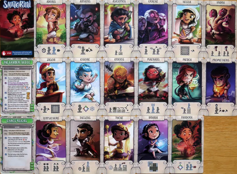 Santorini: Seasons of Chaos contiene 17 personajes: