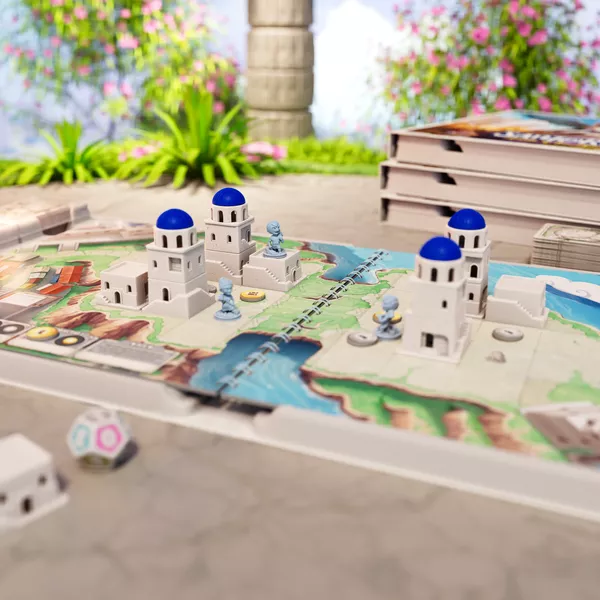 Santorini: El Enigma de la Esfinge es una expansión cooperativa para Santorini que adapta la experiencia competitiva a una aventura continua que los jugadores exploran juntos.